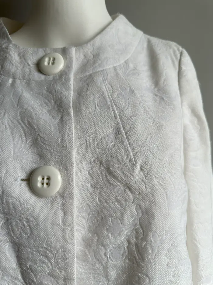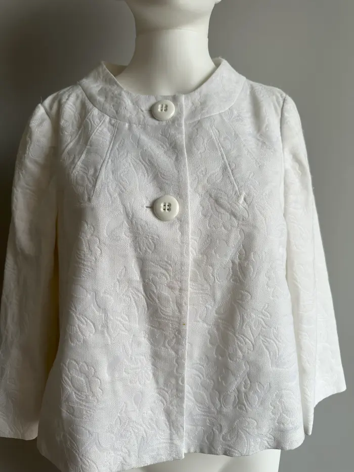 Acest sacou poate fi asortat cu fuste, pantaloni sau rochii și poate transforma instantaneu o ținută simplă într-una plină de stil, datorită detaliilor sale rafinate și croielii bine definite.