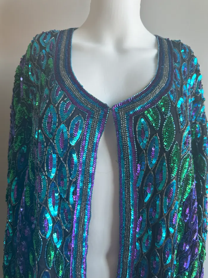 Sacou elegant negru, perfect pentru o apariție spectaculoasă la evenimente speciale. Această piesă sofisticată combină croiala clasică cu detalii strălucitoare, oferind un look memorabil: